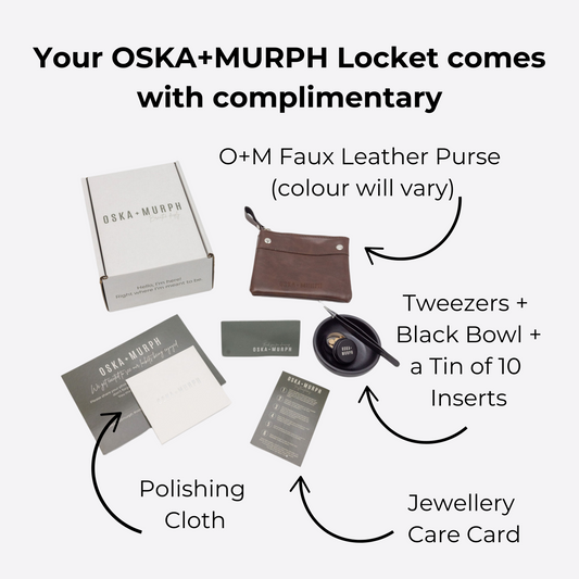 Earth FriendlyAt OSKA+MURPH, we’re dedicated to sustainability. Our lockets are crafted from Sterling Silver, a durable and recyclable material, ensuring a long life for your piece. We place importance on using recycled or recyclable materials wherever possible and prioritize reusable over single-use options.